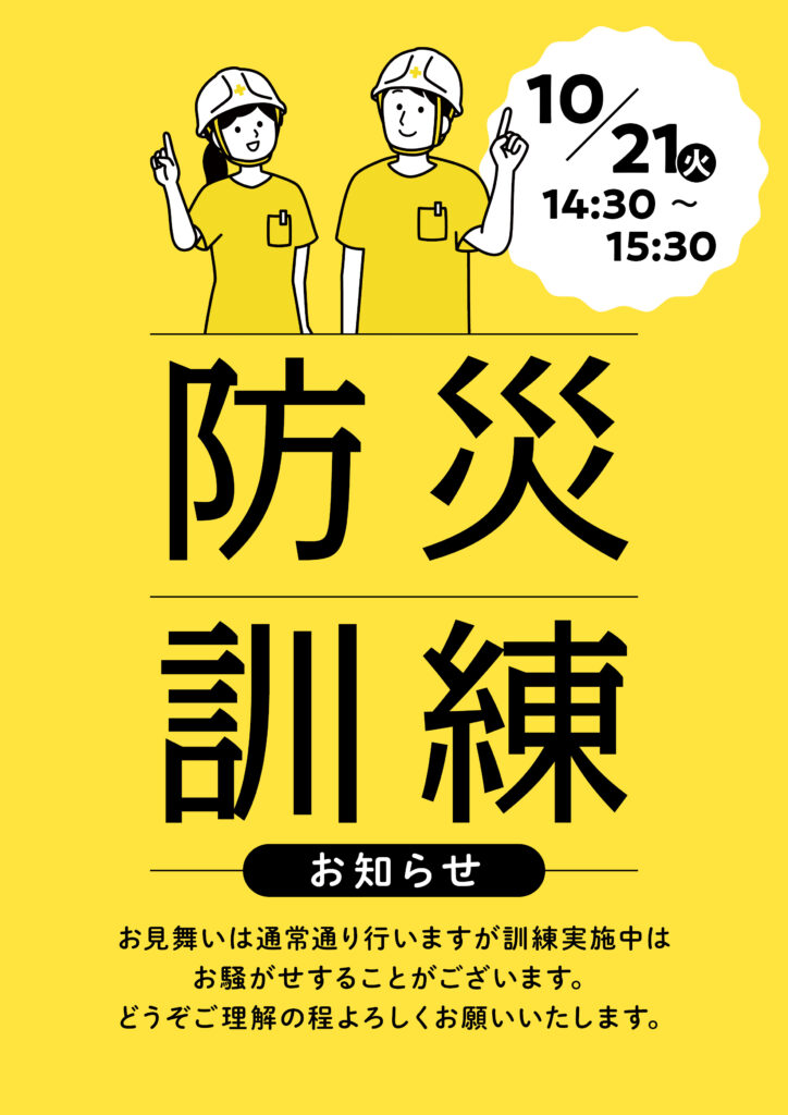 10月21日(火)防災訓練を実施します