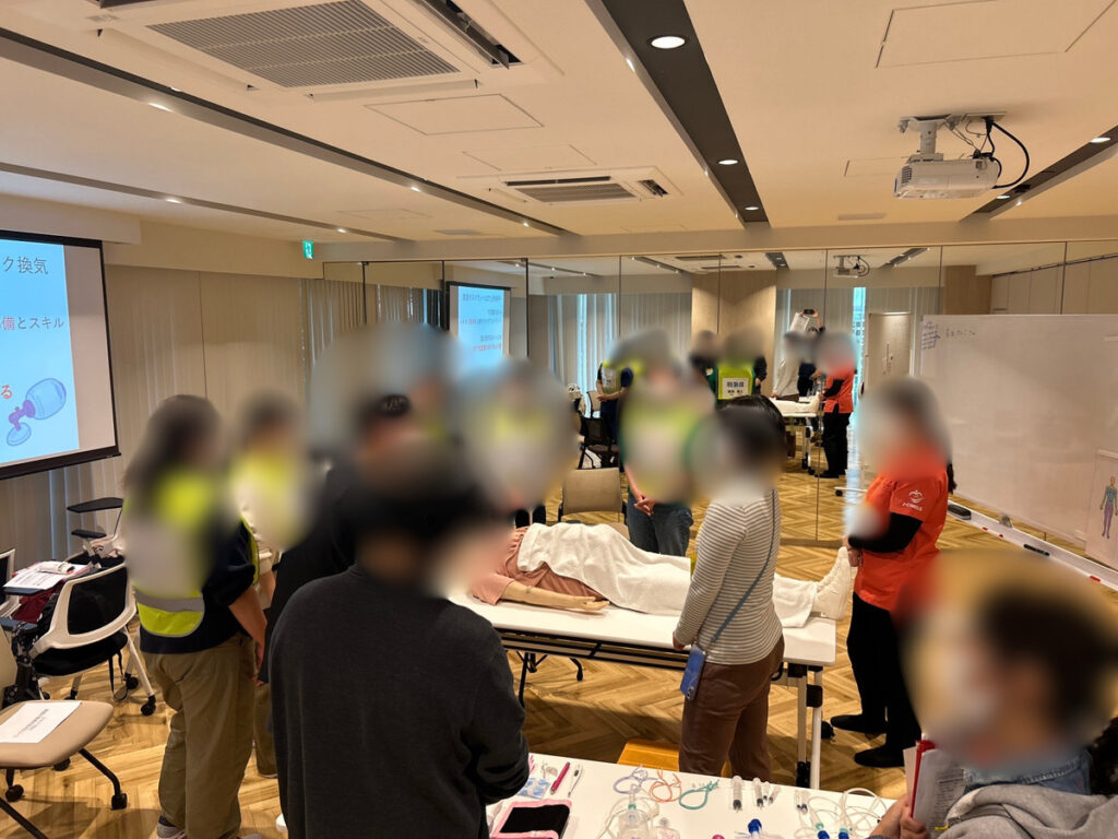 参加者は、入院から麻酔導入前後に確認すること、人工呼吸のスキルトレーニングを行うほか、